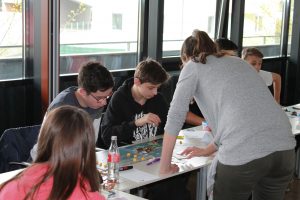 Dr. Birgit Fasser-Heiß sowohl 20 SchülerInnen der Polytechnischen Schule Reutte mit ihren LehrerInnen als auch 4 speziell geschulte TrainerInnen, Frau Carina Kuenz, Frau Ines Tanzer, Herr Simon Hueber, Herr David Kupsa, begrüßen. Während des lernintensiven Tages erhielten die TeilnehmerInnen eine kleine Jause und Getränke zur Stärkung. Die SchülerInnen wurden in kleinen Gruppen eingeteilt, welche jeweils einen Inselstaat darstellen sollten. Spielerisch brachten die kompetenten TrainerInnen ihnen das komplexe Zusammenspiel zwischen Wirtschafts-, Umwelt- und Sozialsystem und den agierenden Gruppierungen sowie deren Abhängigkeiten näher. Dabei erkannten die Jugendlichen, dass Umwelt- und Ressourcenprobleme ständig in soziale Kontexte eingebunden sind.